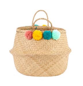 Một thiết kế đơn giản, mộc mạc, mang hơi thở của truyền thống Việt Nam vào cuộc sống hiện đại. Chiếc giỏ cói đơn sơ được các bàn tay thiết kế mặc lên những màu sắc sặc sỡ, những chiếc bông trang trí pom pom vui nhộn, sẽ khiến cho góc nhà bạn thêm xinh tươi, hay sẽ là món quà house-warming ý nghĩa dành cho người thân