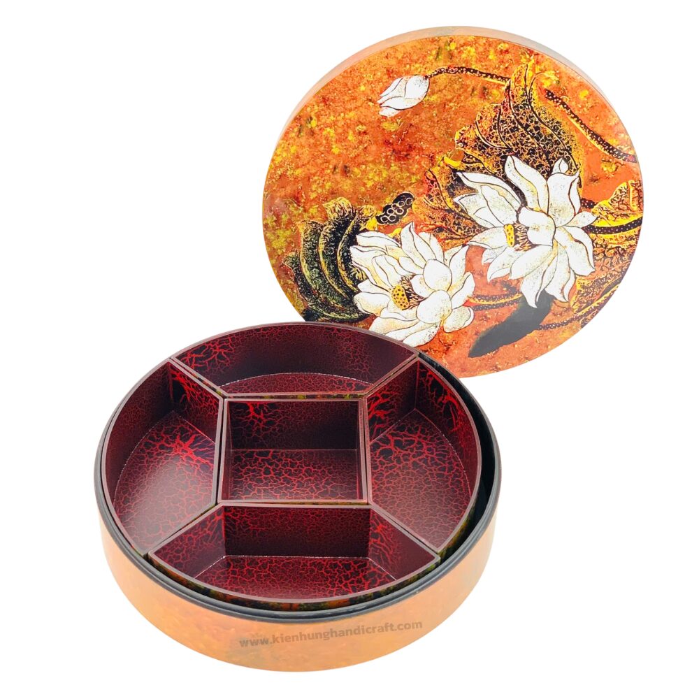 Được chế tác từ chất liệu sơn mài cao cấp, khay mứt nổi bật với: