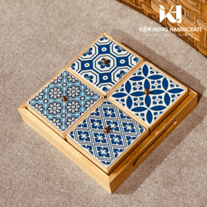 2. Bộ khay & hộp gỗ nắp sứ – Quà tặng từ Kiến Hưng Handicraft