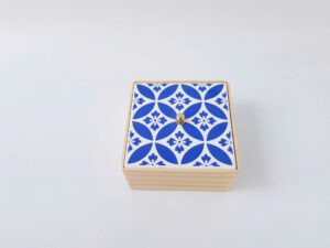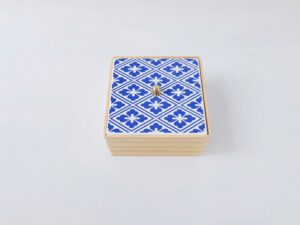 Sản phẩm gồm khay gỗ vuông và hộp nắp sứ thủ công, thiết kế sang trọng – tinh giản, mang tính ứng dụng cao trong không gian làm việc và tiếp khách. Mỗi chi tiết đều được hoàn thiện thủ công, thể hiện tinh thần thủ công Việt cao cấp.